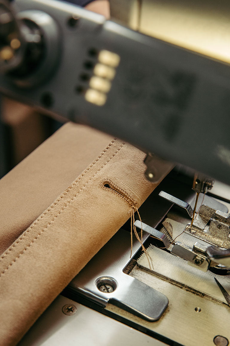 Sebbene il Valstarino sia disponibile sia in tessuti tecnici che in tessuti tradizionali, siamo particolarmente orgogliosi della nostra versione in camoscio di capra, che garantisce una combinazione ottimale di morbidezza, elasticità e traspirabilità. La maggior parte delle pelli proviene da una rinomata conceria toscana, dove vengono pressate per raggiungere uno spessore ideale compreso tra 0,5 mm e 0,6 mm.